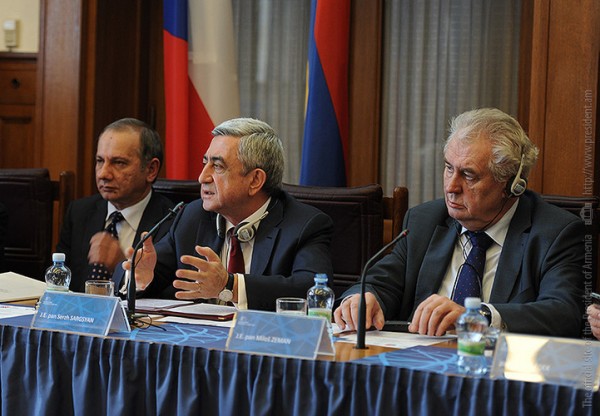 In particular, President Miloš Zeman stressed the importance of the agreements signed between Armenia and Czech separate regions which create good basis for developing decentralized cooperation. Presidents Serzh Sargsyan and Miloš Zeman agreed that Armenian-Czech economic relations have great potentiality and a great role is preserved for businessmen for complete use of it, they expressed confidence that the parties will officially encourage the ties expansion and cooperation development between businessmen.