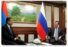 "Our agenda is traditional, nevertheless we can discuss each theme connected to development of economic and humanitarian relations between Russia and Armenia" said Medvedev openinghte meeting.
