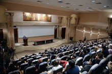Հասկանալի պատճառներով այսօր ես չէի կարող այստեղ գալ ձեռնունայն և ինձ հետ բերել եմ 17-րդ դարի մի ձեռագիր, որ կոչվում է «Կարմիր Ավետարան» և որը 1918թ. մեծ ջանքերի գնով հաջողվել է փրկել, դուրս բերել Ղարսից: Այդ ավետարանը գտնվում էր Ղարսի Սուրբ Հովհաննես եկեղեցում գրեթե 170 տարի, և այժմ ես համոզմունքով այս մասունքը հանձնում եմ Մատենադարանին: Ճիշտ է, պարո՛ն Թամրազյան, այս ձեռագիրն իր սկզբնական օջախ չվերադարձավ, բայց վերադարձավ իր համար ամենաապահով տունը, ամենաապահով հանգրվանը»,-ասել է Նախագահ Սերժ Սարգսյանը:
