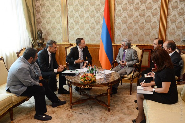President Serzh Sargsyan received today representatives of the McKinsey & Company – Director Andre Andonian and Director on aviation related issues Alex Dichter. Present at the meeting was also a member of the Council of the National Competitiveness Foundation of Armenia Ruben Vardanian.