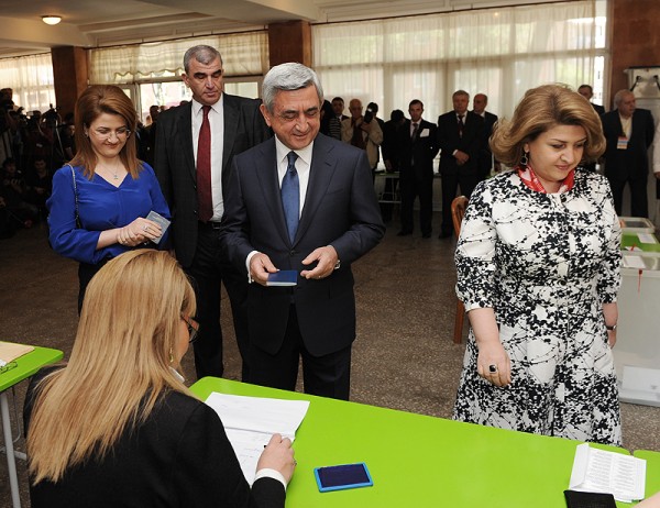 President of RPA, President Serzh Sargsyan together with his spouse and daughter voted at the 9/11 polling station in Yerevan