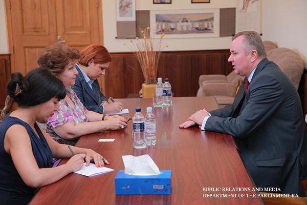 On September 25 the RA NA Vice President Hermine Naghdalyan met with Ivan Kukhta, Ambassador Extraordinary and Plenipotentiary of Ukraine to the RA. In the course of the meeting the sides discussed the inner political situation in Ukraine and details concerning the authorities’ actions aimed at the re-establishment of peace. The Ambassador of Ukraine, particularly, presented the essence of a number of legislative draft laws and normative documents being elaborated by the Verkhovna Rada of Ukraine aimed at mitigating the current complicated and tense situation in Lugansk and Donetsk, including the establishing of the Amnesty Act, the setting of administrative boundaries, the importance of the local self-government bodies elections to be held in the near future and the ceasefire establishment. The NA Vice President Hermine Naghdalyan in her turn has highly assessed the peaceful settlement efforts of the Ukrainian authorities, expressing hope that brotherly Ukraine would finally find its peace and quiescence and would be able to overcome the pain that the Ukrainian people was suffering during the whole war period. Mrs Naghdalyan has observed important the fact of peoples’ right to self-determination, expressing hope that if it is finally established, legitimate result is recorded, it will be admissible for all the nations, underlining its all-human significance, especially in the context of the Armenians’ centuries-old struggle. In this sense, the parties have highly appreciated the existence of the Armenian community in Ukraine, which integrating to the country’s life and reality, has its contribution to the establishment of firm relations between the two brotherly peoples, the Ukrainians and the Armenians, and in the statehood building of the country. In the course of the meeting the parties have also touched upon the works envisaged in the upcoming PACE Plenary Session. At the end of the meeting the NA Vice President sent her best wishes to the Ukrainian people, wishing them peace, welfare and prosperity.