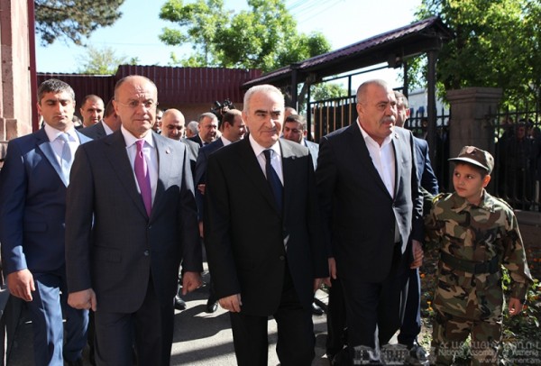On May 8 the RA NA Galust Sahakyan accompanied by the RA Minister of Defense Seyran Ohanyan and Mayor of Yerevan Taron Margaryan visited the Yerkrapah Volunteers Union (YVU) board on the occasion of the events dedicated to Yerkrapah (land defender) Day. The clergymen performed blessing ceremony of cross-stones.