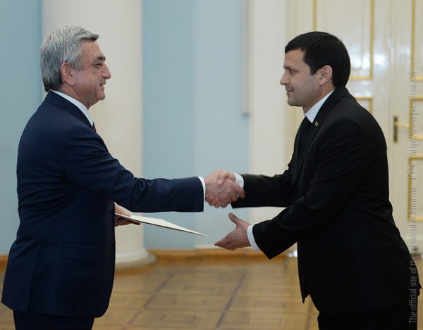 Նախագահ Սերժ Սարգսյանին այսօր իր հավատարմագրերն է հանձնել Հայաստանի Հանրապետությունում Թուրքմենստանի նորանշանակ արտակարգ և լիազոր դեսպան Մուհամեդնիյազ Մաշալովը: