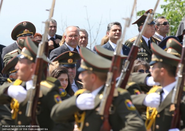 Մայիսի 9-ին՝ Հաղթանակի եւ Խաղաղության տոնի առթիվ ՀՀ Ազգային ժողովի նախագահ Սամվել Նիկոյանը, պատգամավորներ, պաշտոնատար անձինք, բարձրաստիճան զինվորականներ, հոգեւոր դասի ներկայացուցիչներ, Հայաստանում հավատարմագրված դիվանագետներ այցելեցին «Մայր Հայաստան» հուշահամալիր եւ ծաղկեպսակներ ու ծաղիկներ դրեցին «Անհայտ զինվորի» շիրիմին, լռությամբ հարգեցին Հայրենական մեծ պատերազմում եւ արցախյան հերոսամարտում զոհվածների հիշատակը։
