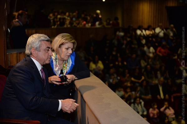 Президент Серж Саргсян сегодня в Национальном академическом театре имени Г.Сундукяна присутствовал на концерте-представлении под названием «Отец армянской песни», посвященном 110-летию Айрика Мурадяна, который внес большой вклад в сферу армянского народного песенного искусства.