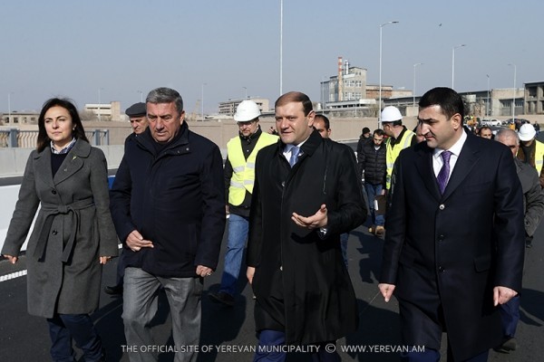 Ответственные лица доложили мэру Тарону Маргаряну, что с целью обеспечения беспрерывного транспортного движения над железнодорожным полотном Арташатского шоссе была построена эстакада, длиною в 270 м. Над Арташатским шоссе построен также надземный пешеходный переход, который будет оборудован лифтами для лиц с ограниченными физическими возможностями.